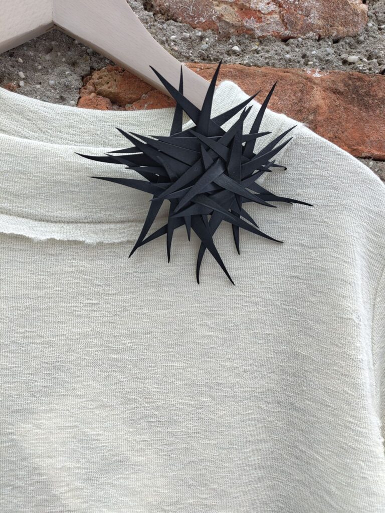 Der starke Magnet hält zuverlässig und wird seitlich gelöst – so bleiben Stoffe unversehrt. Kein Stechen, kein Ziehen, kein Kompromiss. Die Brosche sitzt dort, wo sie wirken darf: auf Blusen.Tuniken, Jacken,Schals oder Strickteilen.