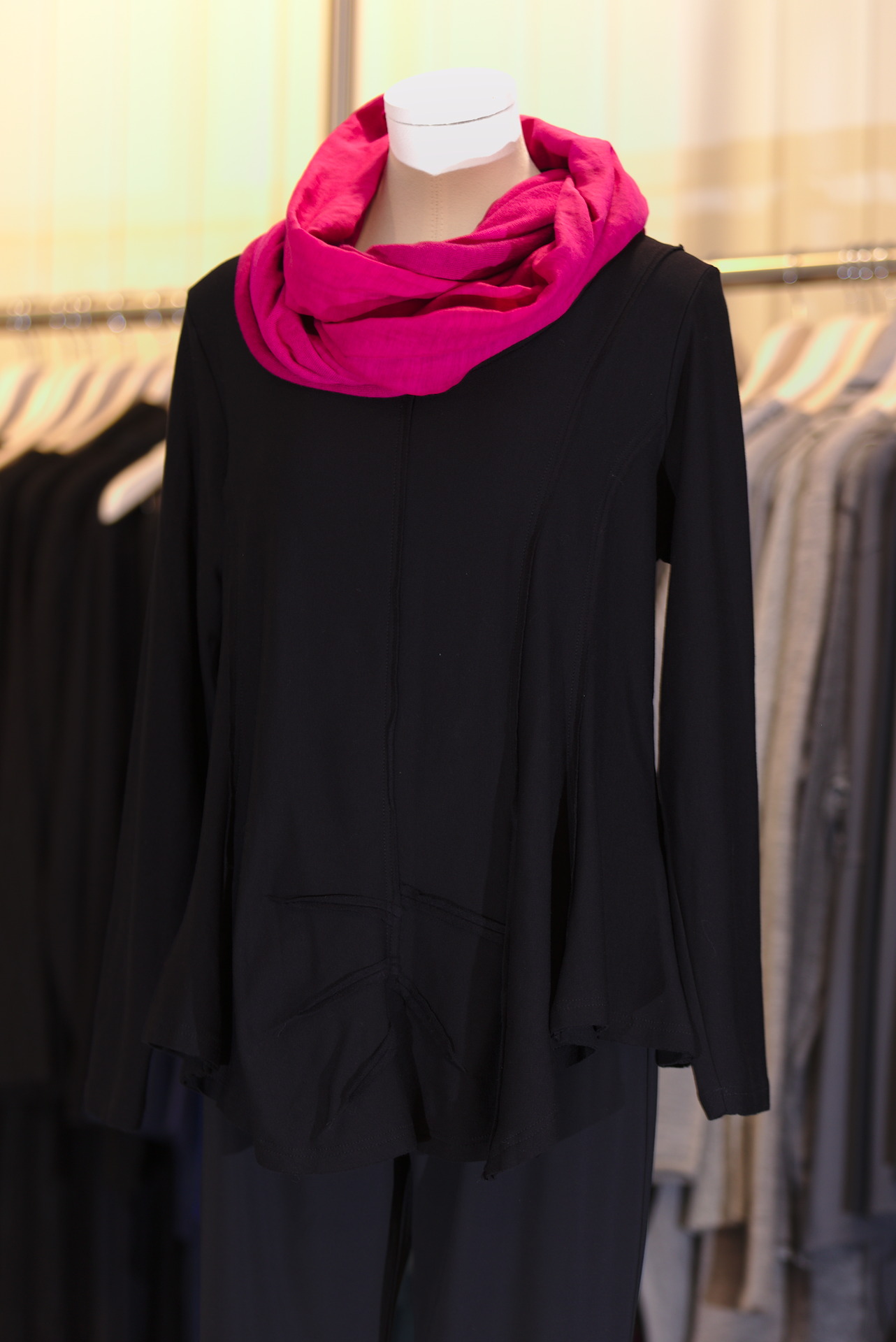 Das PLÜ BasicShirt , darunter das Longtop ist für mich eine optimale Verbindung. Gerne auch zwei Tops übereinander für ein warmes darunter in schwarz und pink passt gut zusammen.